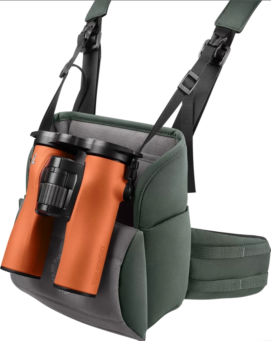 Disfrute de las ventajas de materiales y cierres de primera calidad. Son robustos y duraderos para que pueda disfrutar utilizando su arnés el mayor tiempo posible durante cada actividad. El arnés, cuyo tejido verde oscuro pase inadvertido en la naturaleza, está diseñado para adaptarse perfectamente a sus binoculares SWAROVSKI OPTIK.
